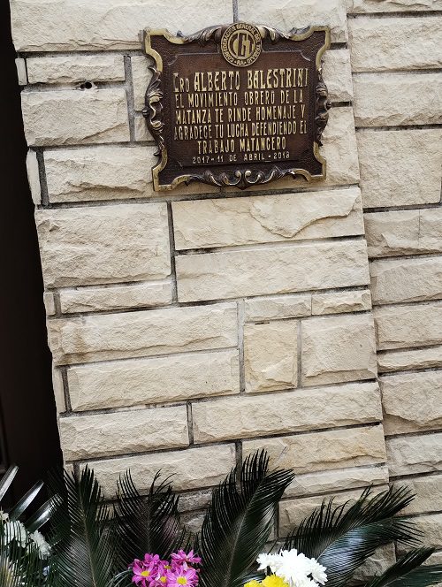 Y finaliza el titular de la organización obrera de La Matanza: ¡es lo que intentamos hacer! Nada más agradecerles todos los años que nos acompañemos, venimos, nos juntamos. Hoy está Daniela, una de sus nueras y una compañera. Nuestros saludos a la familia de Alberto, a su esposa y compañera de lucha María del Carmen. Para nosotros es supremo el respeto –tengan en claro-No venimos solamente a saludarlo sino a reivindicar su historia al hombre y fundamentalmente a sus convicciones que hicieron que entregara su vida por el Justicialismo. ¡Gracias Alberto! ¡¡Alberto Palestina siempre presente!! El final obviamente fue la Marcha Peronista, fuertemente cantada por los militantes sindicalistas.