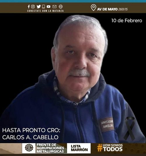 Al Compañero Secretario General Esteban Cabello antes el fallecimiento de su padre el Compañero: CARLOS A. CABELLO