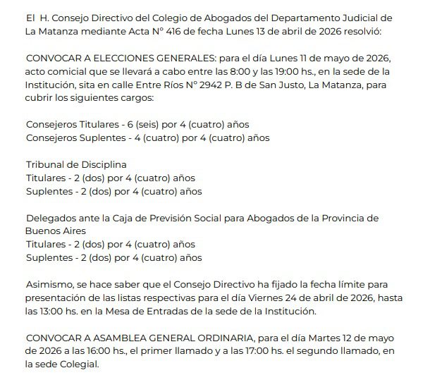Locales Convocatoria a elecciones y asamblea general ordinaria 2026 20 de abril de 2026 Veces visto: 8