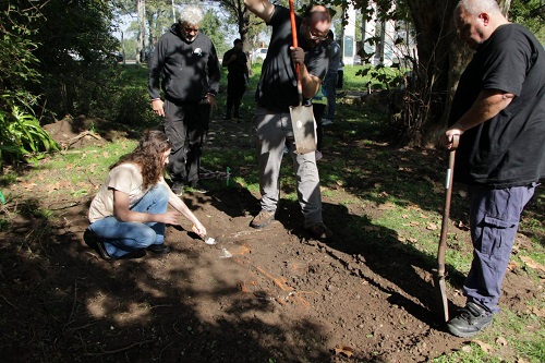 –Desde hace una semanas se están haciendo estas excavaciones y el 11 de mayo se va a pasar otra vez el Geo Radar que busca restos humanos y elementos que nos digan que hubo allí y más allá del trabajo del Juzgado del Dr. Rafecas que tiene a su cargo la Causa Vesubio, se pudo determinar que allí hubo tres chalets que los tiraron abajo cuando en 1978 vino la Comisión Internacional de Derechos Humanos. El Geo Radar encontró escombros enterrados. El predio fue cerrado pero es mucho más amplio. Hay que pasarlo en la parte de atrás incluso hay un terreno ocupado por un señor hace años, comienza Eva en su relato, que muchísimos matanceros no conoce. Sobre eso, dice:
